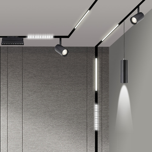 磁吸軌道燈,近兩年來(lái)非常流行,基本是無(wú)主燈設(shè)計(jì)中必備的燈具之一。磁吸軌道燈通過(guò)磁力來(lái)吸附在軌道上。現(xiàn)代磁吸燈,直接讓軌道盒嵌入吊頂里面,然后燈具吸附軌道上,后續(xù)檢修和更換燈具,調(diào)整位置都很方便!